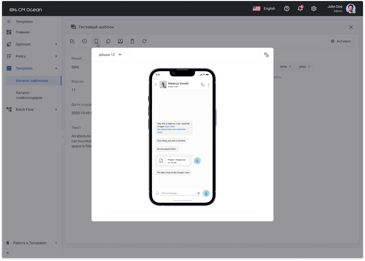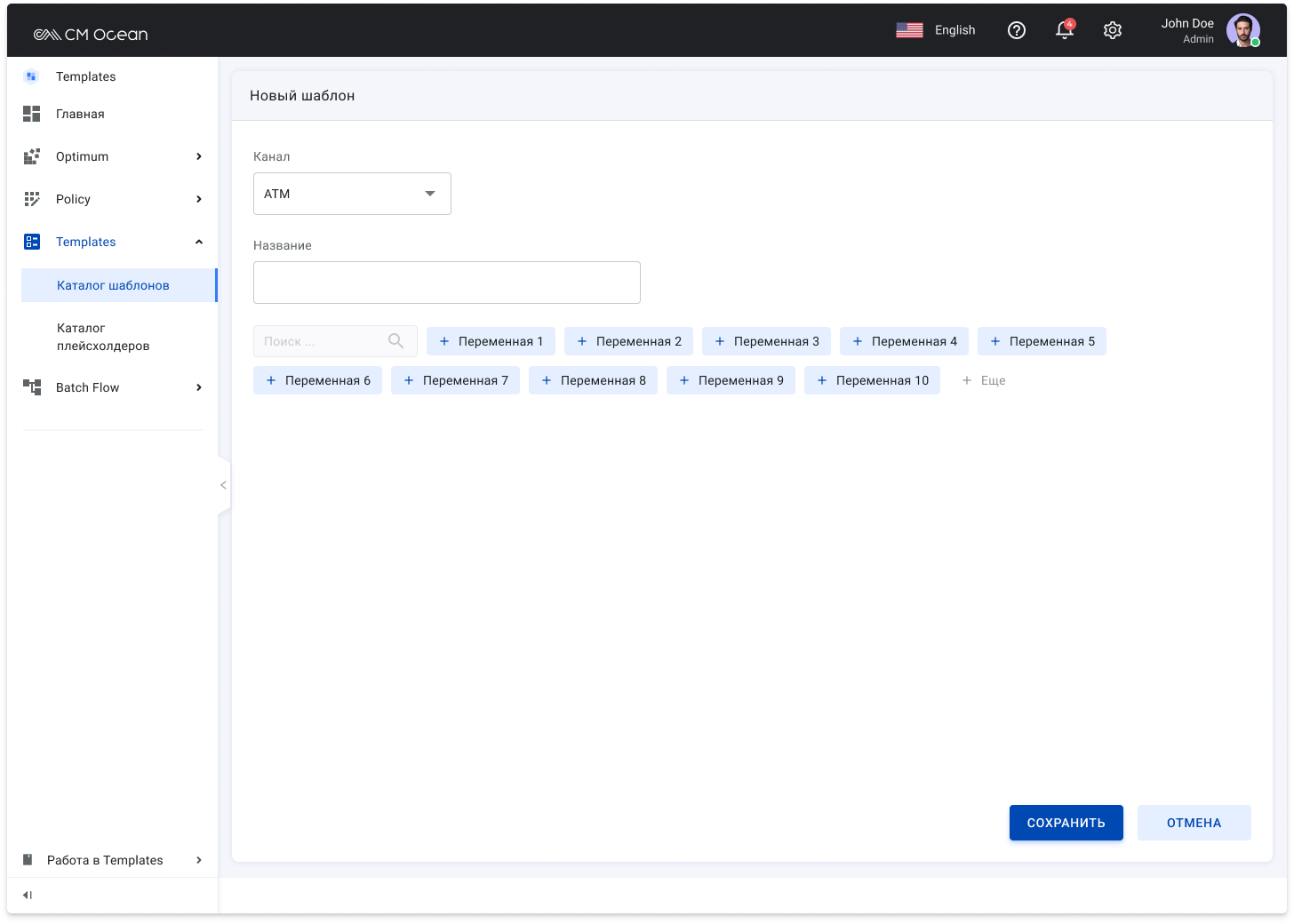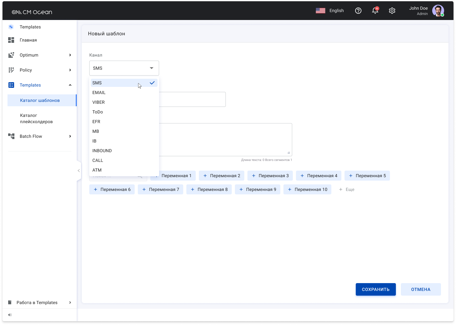 Единый пользовательский интерфейс объединяет настройку шаблонов в различных каналах коммуникации. Персонализация сообщений возможна за счет подстановочных персональных параметров, изображений и эмодзи